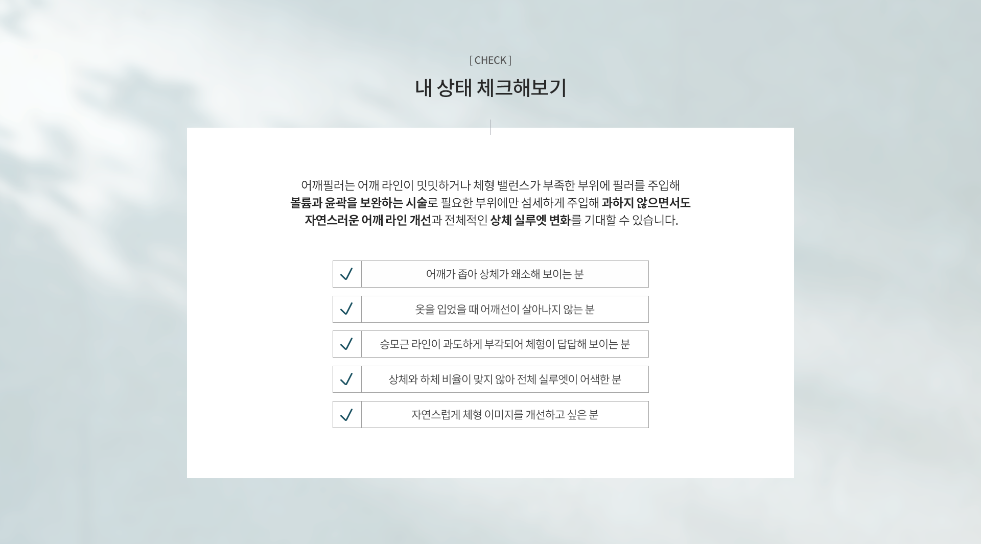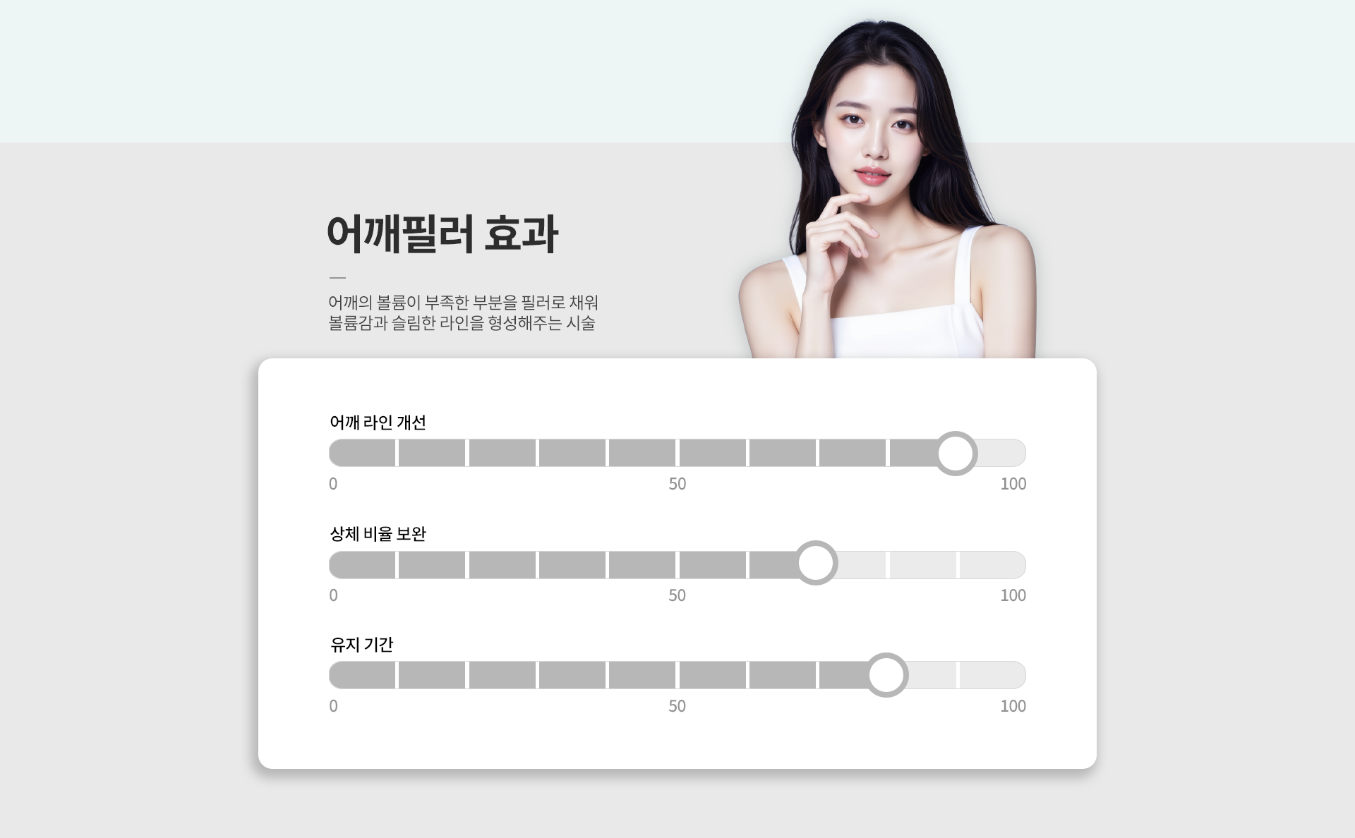 어깨필러는 어깨 윤곽을 정리하고 볼륨을 보완해 더 또렷한 어깨라인을 만들어주는 시술입니다.